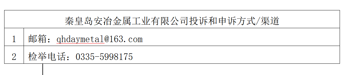 當(dāng)前位置:首頁(yè)-資訊中心-秦皇島安治金屬工業(yè)有限公司投訴和申訴方式/渠道